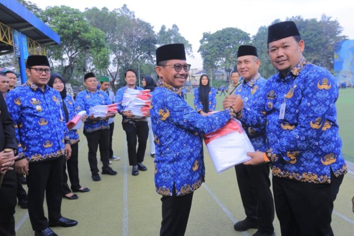 Upacara Harlah kali ini Walikota membagikan lebih dari 1000 bendera merah putih ke organisasi kemasyarakatan (ormas) dan juga ke 13 Camat se kota Tangerang.