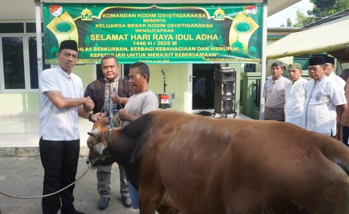 Dandim 0510/Tigaraksa, Letkol Inf Yudho Setyono, S.H, memimpin langsung kegiatan tersebut menyampaikan bahwa kegiatan qurban ini merupakan bagian dari wujud syukur dan kepedulian sosial jajaran TNI terhadap masyarakat sekitar.