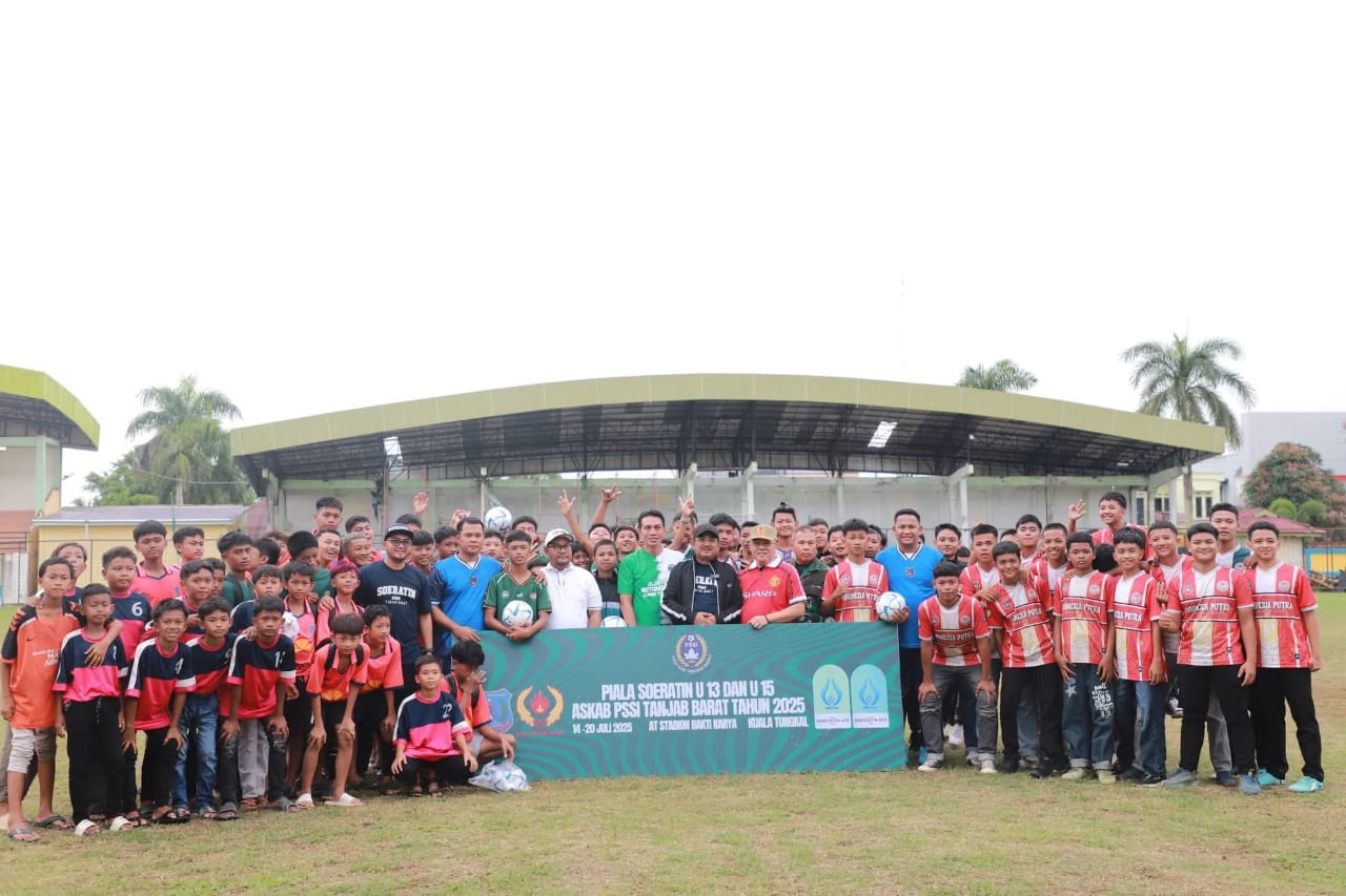 Kualatungkal,koranpelita.co – Bupati Tanjung Jabung Barat, Drs. H. Anwar Sadat, M.Ag, secara resmi membuka Open Turnamen Piala Soeratin U-13 dan U-15 Tahun 2025 yang digelar di Lapangan Bhakti Karya, Kuala Tungkal, Senin (14/07/2025).