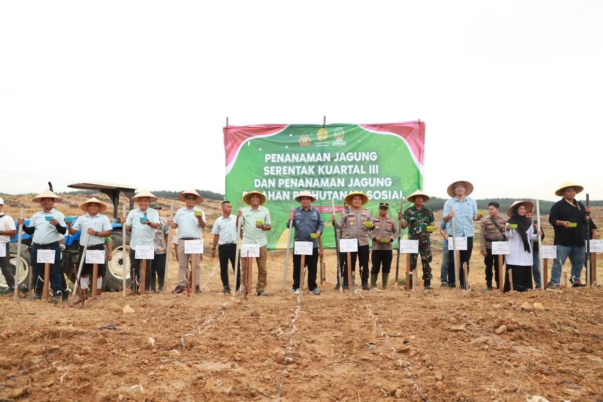 Merlung,koranpelita.co – Wakil Bupati Tanjung Jabung Barat (Tanjabbarat), Dr. H. Katamso SA, SE., ME., bersama Kapolres Tanjab Barat, AKBP Agung Basuki, S.I.K., M.M., unsur Forkopimda, dan pihak PT. Dasa Anugrah Sejati (DAS), mengikuti kegiatan penanaman jagung serentak kuartal III di lahan Perhutanan Sosial Afdeling III PT DAS, Kecamatan Merlung, Rabu (09/07/2025).