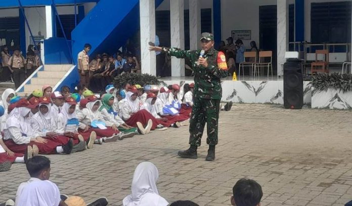 Kodam Jaya,koranpelita.co – Pelda Saefudin yang mewakili Danramil 01/Telugnaga Mayor Inf Heru Susanto,memberikan materi bela negara dan PBB dalam kegiatan Masa Pengenalan Lingkungan Sekolah (MPLS) di sekolah SMP Negeri 2 Kosambi Kabupaten Tangerang,Rabu (16/7/2025).