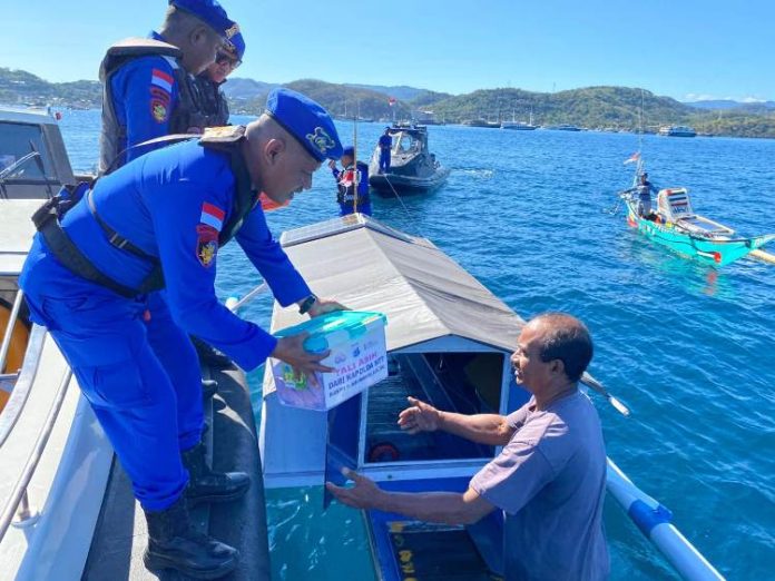 Jumat Berkah kali ini diisi dengan penyerahan tali asih dari Kapolda Nusa Tenggara Timur, Irjen Pol Dr. Rudi Darmoko, S.I.K., M.Si., yang disampaikan secara langsung oleh Dirpolairud Polda NTT, Kombes Pol Irwan Deffi Nasution, S.I.K., M.H., kepada para nelayan di perairan Labuan Bajo.