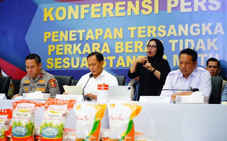 Jakarta,koranpelita.co – Bareskrim Polri melakukan penetapan tersangka kasus beras oplosan yang dilakukan PT PIM. Ketiga tersangka inisial S, Presdir PT PIM, AI, Kepala Pabrik PT PIM, dan DO , Kepala QC PT PIM .