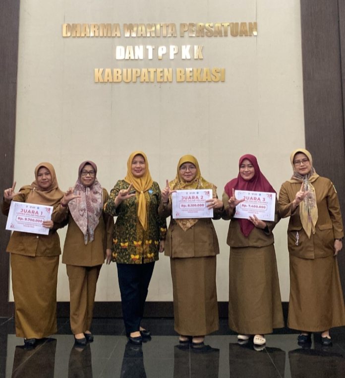 Ketua TP PKK Kabupaten Bekasi, Marlynda Ade Kuswara, serta Bu Nia Surya Atmaja sebagai dewan juri, beserta pengurus TP PKK Kabupaten Bekasi.