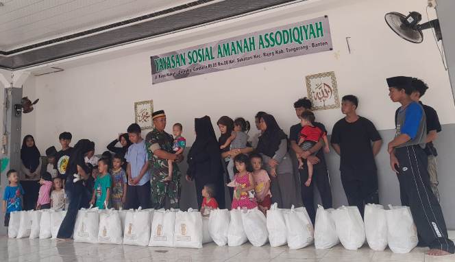 Kodam Jaya,koranpelita.co – Babinsa Koramil 12/Rajeg Kodim 0510/Trs Serda Sugeng Riyadi mengadakan kegiatan Bakti Sosial memberikan paket sembako untuk anak-anak yatim piatu di Panti Asuhan Asodaqiyah Kelurahan Sukatani Kecamatan Rajeg, Kabupaten Tangerang, Senin (8/9/2025).
