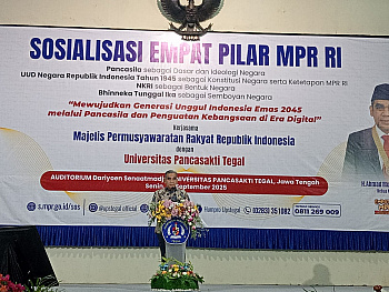 KORANPELITA.CO – Majelis Permusyawaratan Rakyat Republik Indonesia (MPR RI) sukses menggelar kegiatan Sosialisasi Empat Pilar MPR RI di Auditorium Dwi Jipto, Universitas Pancasakti (UPS) Tegal, Jawa Tengah, Senin (29/9/2025).