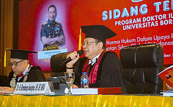 Hadir sebagai penguji antara lain Promotor Prof. Faisal Santiago, Ko-Promotor Dr. Sulhan, Penguji Internal Prof. Ade Saptomo dan Penguji Eksternal Prof. Ibnu Sina Chandranegara.