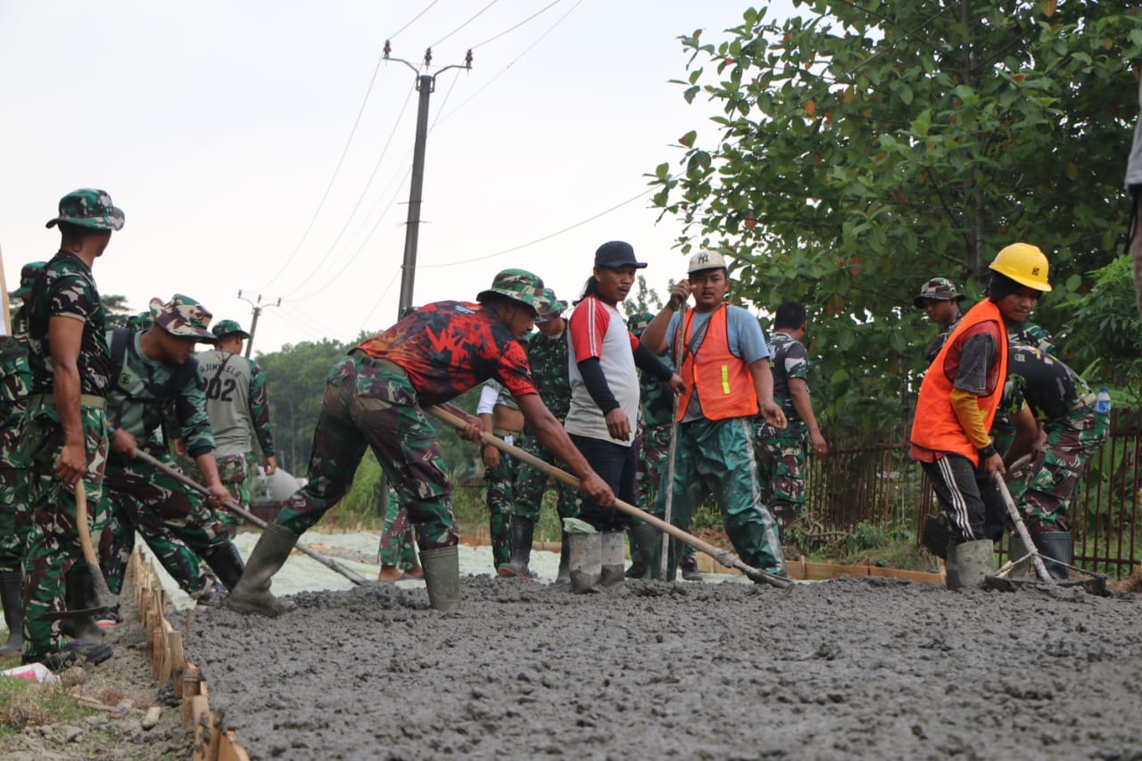 “Kami ingin memastikan kualitas jalan coran benar-benar kuat dan tahan lama. Karena itu, pengawasan dilakukan langsung di lapangan,” ujar Letkol Sabdho.