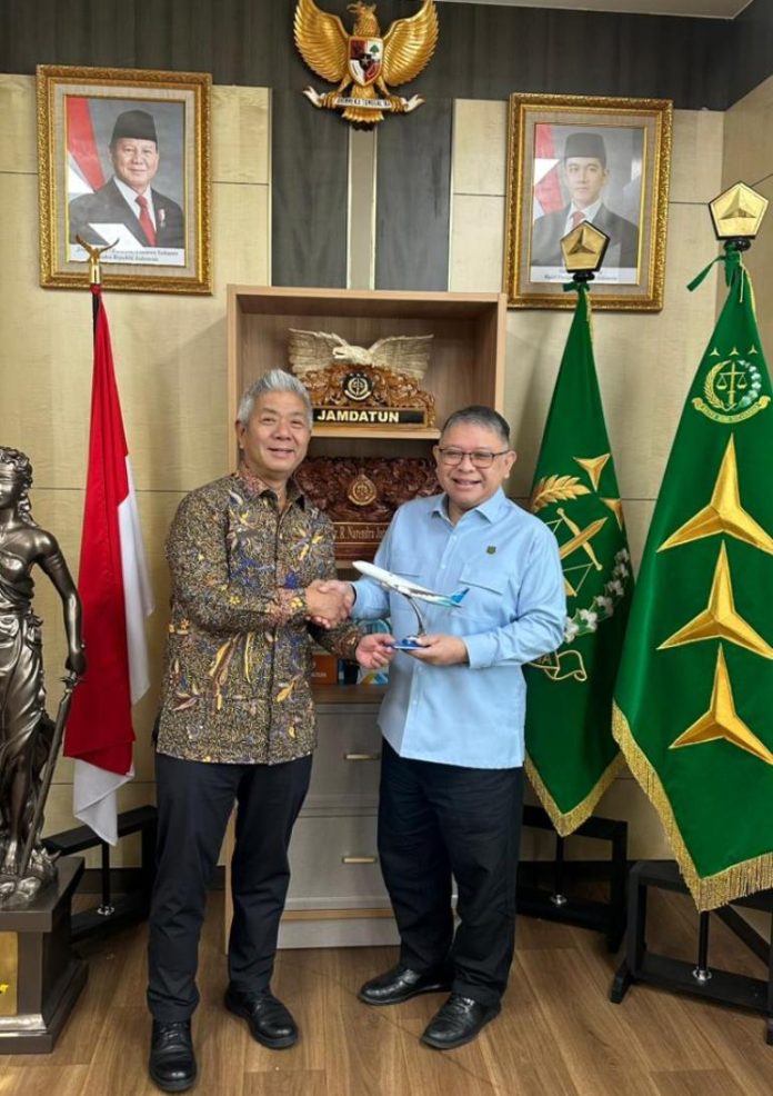 Wakil Direktur Utama Garuda Indonesia, Thomas Oentoro, melakukan diskusi bersama Jamdatun Narendra Jatna Jamdatun dan Direktur Pertimbangan Hukum Irene Putrie di Kantor Kejaksaan Agung RI. Pertemuan ini membahas penguatan pendampingan dan penanganan aspek hukum dalam penyelenggaraan layanan penerbangan ibadah haji, utamanya pengadaan perlengkapan penunjang seperti koper haji bagi jemaah yang dilayani Garuda Indonesia.