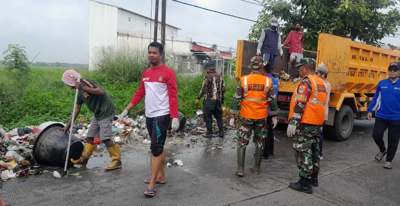 Satuan Tugas (Satgas) Penanganan Sampah Koramil 07/Kresek langsung bergerak serentak dengan melibatkan personil, warga masyarakat dan Dinas Lingkungan Hidup untuk pengangkutan sampah.