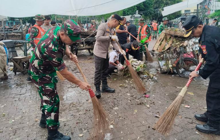 Usai pelaksanaan apel, seluruh personel gabungan melaksanakan kegiatan bersih-bersih secara serentak di area Pasar Babakan dan sekitarnya, sebagai wujud komitmen bersama dalam menciptakan lingkungan yang bersih, sehat, dan nyaman bagi masyarakat. (*/sul).