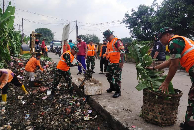 “Untuk mengantisipasi penumpukan sampah di beberapa lokasi, kita bantu muat sampah dengan alat berat,” ujar Danramil 03/Legok Mayor Kav Dwi Joko Purnomo.