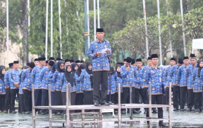 Hal ini disampaikannya saat memimpin Upacara Pengibaran Bendera di Plaza Pemkab Bekasi, Cikarang Pusat, Rabu, (18/02/2026). Meski rintik hujan tipis mengguyur, namun barisan pegawai tetap berdiri tegap mengikuti seluruh rangkaian dengan penuh khidmat.