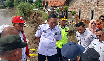 Peninjauan dilakukan pascabanjir yang terjadi pada Selasa malam (10/2), ketika debit air meningkat dan meluap akibat tanggul yang jebul tergerus air sungai.