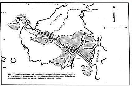 Jalur struktur ini diperkirakan berawal dari kawasan Teluk Adang di sekitar Kabupaten Paser di Kalimantan Timur. Dari sana jalurnya diperkirakan menerus ke pedalaman pulau menuju wilayah Sintang, Sekadau, hingga Sanggau. Patahan ini kemudian diperkirakan berlanjut menuju kawasan perbatasan di sekitar Entikong dan tersambung dengan sistem struktur geologi di wilayah Kuching, Sarawak Malaysia.