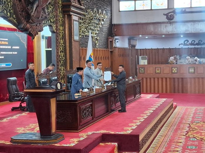 Jambi, Koranpelita .co – Gubernur Jambi, Dr. H. Al Haris, S.Sos, MH menghadiri langsung rapat paripurna DPRD Provinsi Jambi dengan agenda penyampaian laporan hasil pembahasan oleh Panitia Khusus (Pansus), bertempat di Gedung DPRD Provinsi Jambi, Senin (27/4/2026) siang.