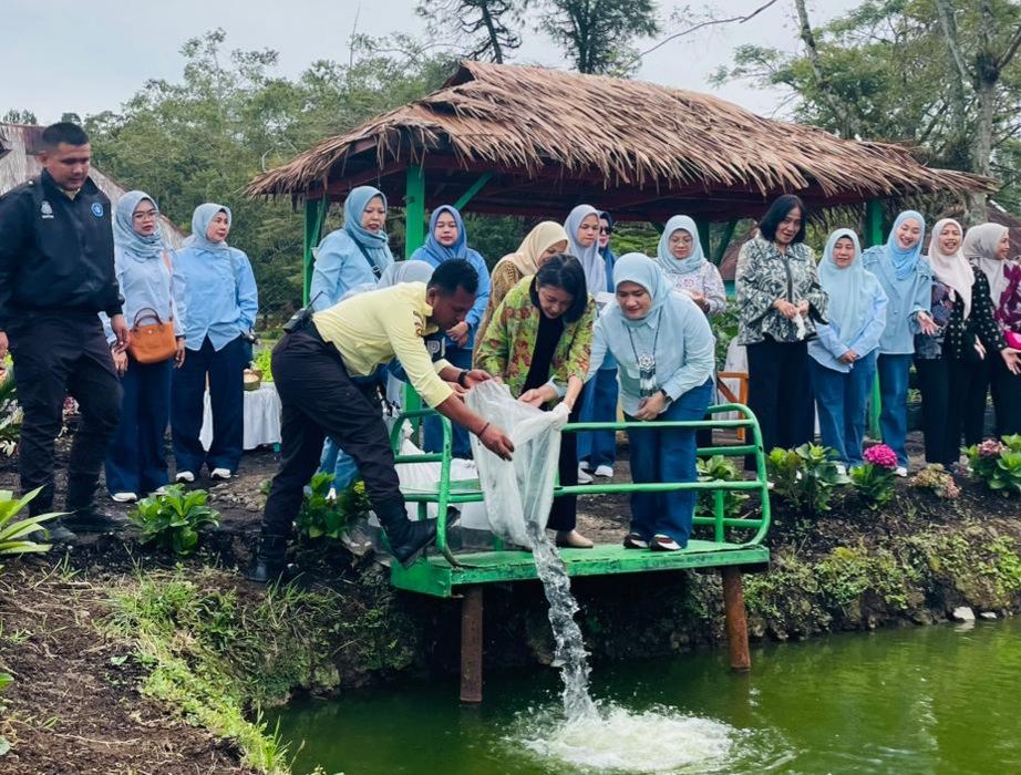 Pelepasan bibit ikan Nila itu, langsung dilakukan Ny Lina Jatmiko, Ketua Umum IKBI PTPN IV Palmco didampingi Ketua IKBI PTPN IV Regional IV Jambi, Ny Yusnidar Khayamuddin pada Hari Minggu. (12/4/2026). Business Support (BS) Head PTPN IV Regional IV Jambi Dhanny Hermawan dan Manager Kebun Kayu Aro, Indra Utama Lubis langsung menyaksikan pelepasan ribuan bibit ikan di kolam kebun Kayu Aro.