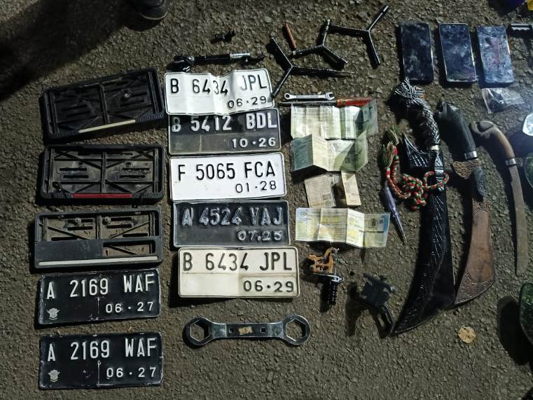 Dalam waktu singkat, kedua pelaku berhasil ditangkap di sebuah kontrakan di wilayah Curug. Dari lokasi tersebut, petugas menemukan sejumlah barang bukti, di antaranya kunci T, tiga bilah senjata tajam jenis golok, tiga unit handphone, serta tiga unit sepeda motor yang diduga hasil kejahatan.
