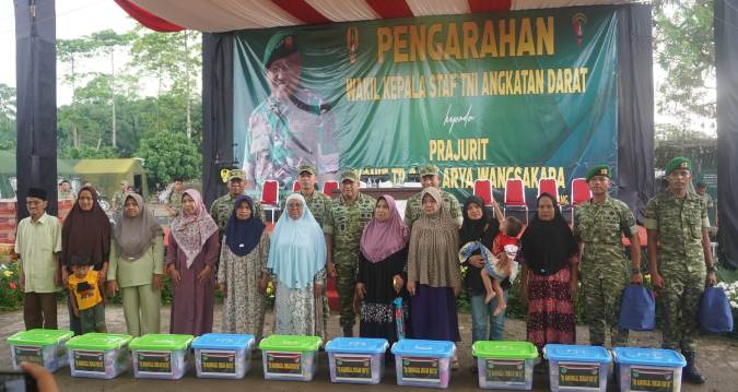 Selain itu, Wakasad juga melaksanakan peninjauan area Markas Yon TP 942/AW, kegiatan penanaman pohon, serta penyerahan bantuan sosial berupa paket sembako kepada prajurit dan masyarakat sekitar secara simbolis.