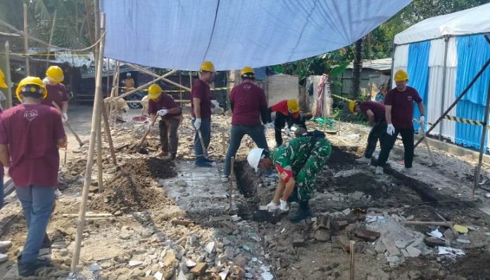 Kodam Jaya,koranpelita.co – Sebagai bentuk nyata Kemanunggalan TNI dengan Rakyat, Babinsa Desa Lembangsari, Koramil 12/Rajeg, Kodim 0510/Trs Serma Toni Yudha S, turun langsung membantu proses pembangunan Rumah Tidak Layak Huni (RTLH) rumah Jaan di Kampung Guha RT 03/02 Desa Lembangsari Kecamatan Rajeg Kabupaten Tangerang, Rabu (22/4/2026).