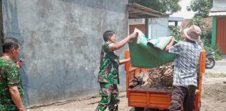 Anggota Koramil 14/Panongan Kodim 0510/Trs Menata Lingkungan Pangkalan