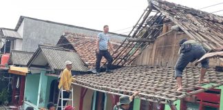 Babinsa Koramil 02/Curug Pimpin Gotong Royong Bongkar Atap Rumah Warga