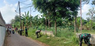 Babinsa Koramil 02/Curug Gotong Royong Bersihkan Sampah di Kampung Pancasila