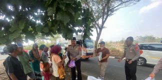 Jumat Berkah, Ditpamobvit Polda Banten Berbagi Nasi Kotak dan Beras