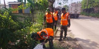 Satgas Sampah Kodim 0510/Tigaraksa Bersihkan Sampah Jalan Legok-Parung Panjang