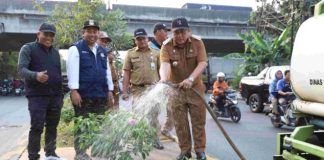 Kadisperkimtan Dampingi Pj Bupati Bekasi Tinjau Program Penataan Taman Median